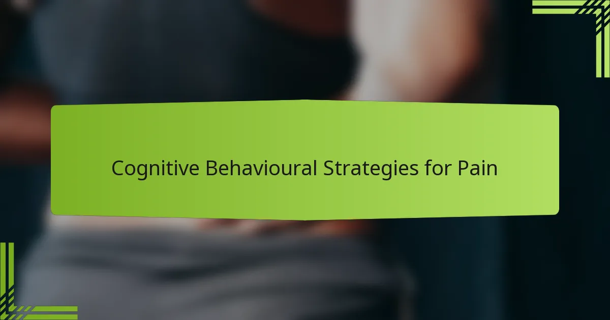 Cognitive behavioural strategies for pain management are effective techniques designed to help individuals reshape their perceptions of pain and develop healthier coping mechanisms. By focusing on altering negative thought patterns and enhancing coping skills, these strategies address the psychological factors that contribute to chronic pain, ultimately improving both pain management and overall quality of life.