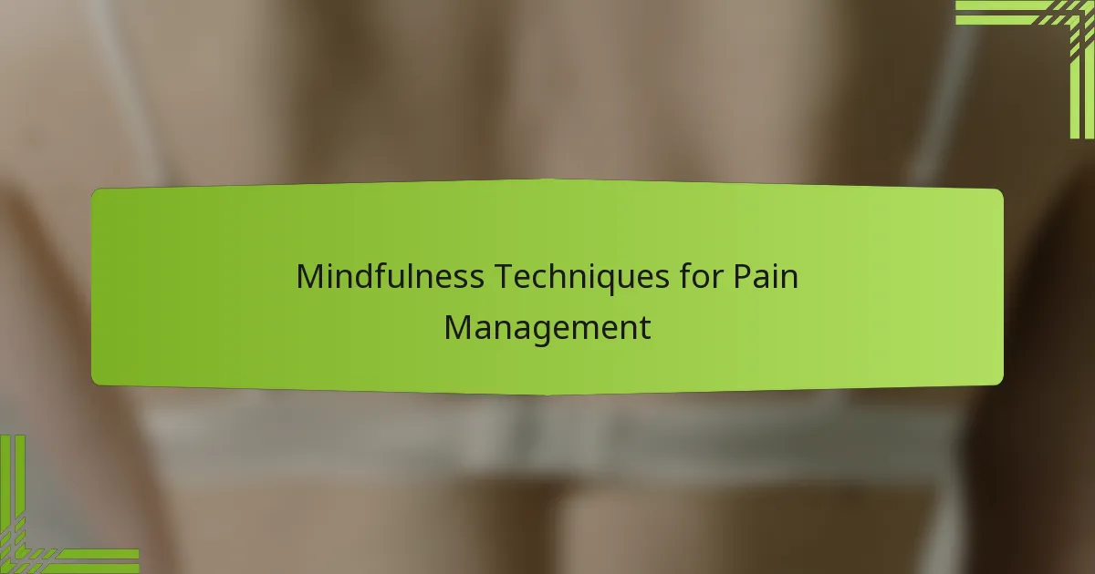Mindfulness techniques can effectively help manage pain by promoting relaxation and enhancing awareness of bodily sensations. These practices encourage individuals to focus on the present moment, which can reduce stress and improve emotional responses to pain.